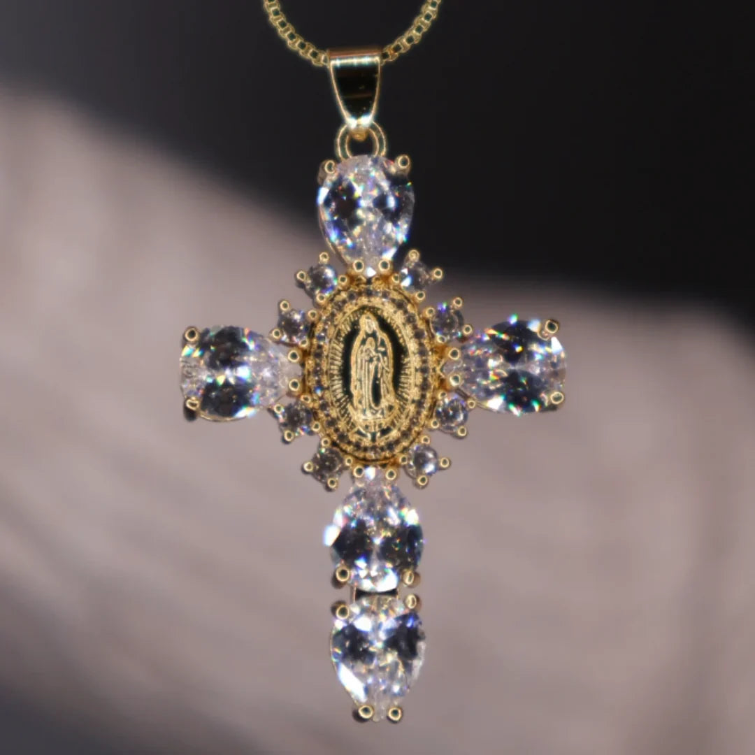 Weiß / Gold Kristall Kreuzkette